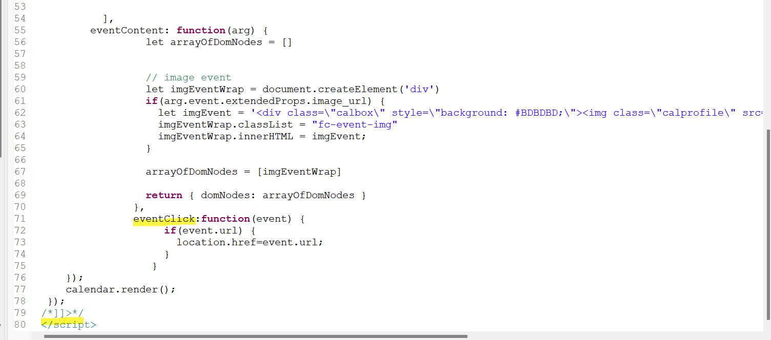 let imgEvent = '<div class=\"calbox\" style=\"background: #BDBDBD;\"><img class=\"calprofile\" src=\"/dageul/getpic/getprofile/'+arg.event.extendedProps.image_url+'" ></a></div>'