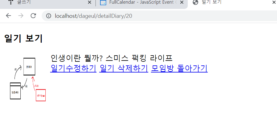 ์ผ๊ธฐ๋ฅผ ์ฐ๋ฉด ํด๋น ๋ ์ง์ ํ๋กํ ์ฌ์ง์ด ๋จ๊ณ ํ๋กํ์ ๋๋ฅด๋ฉด ์ผ๊ธฐ ์์ธ ํ์ด์ง๋ก ๋์ด๊ฐ๊ฒ ๋ง๋ค์๋ค.