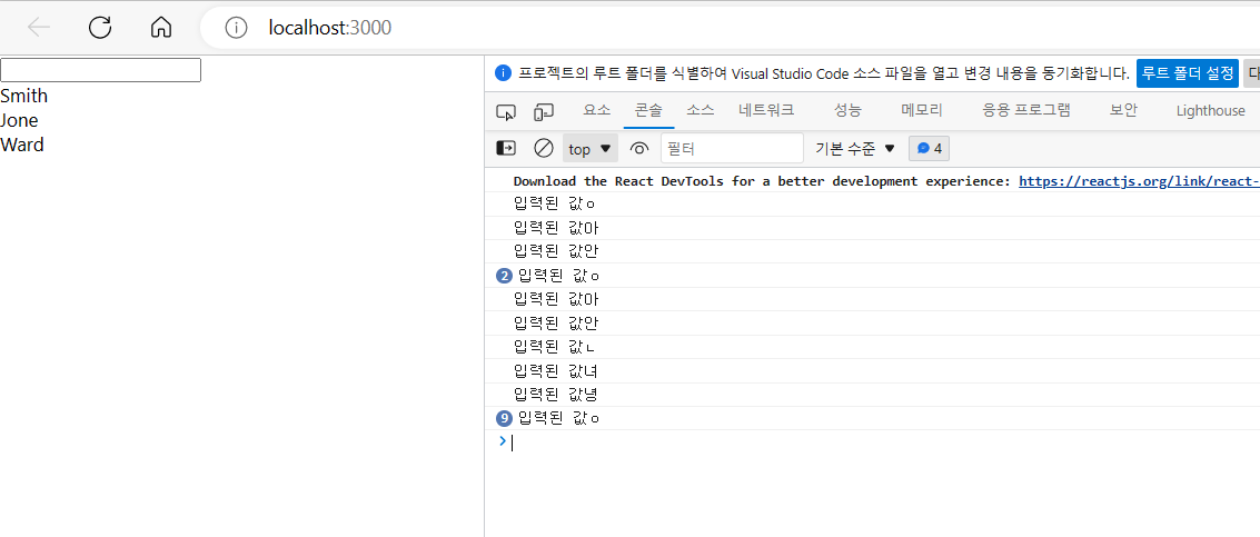 ๋ ฅ๋ ๊ฐ"+ val);