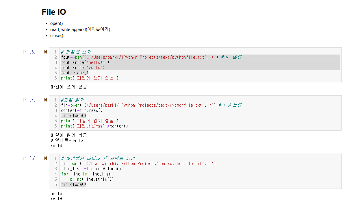 # 파일에 이어쓰기 : w, r, a