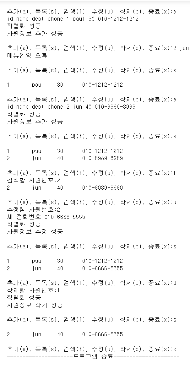 - ๋ฆฌ์คํธ์ Emp๊ฐ์ฒด๋ฅผ ์ ์ฅํ๊ณ ๋ฆฌ์คํธ๋ฅผ ์ง๋ ฌํ