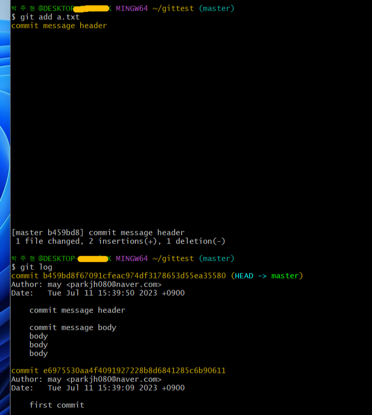 * -m ์ปค๋ฐ ๋ฉ์์ง๋ฅผ ์์ฑํ๋ ์ต์