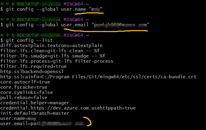$ git config --global user.email "<์ฌ์ฉ์ ์ด๋ฉ์ผ>"