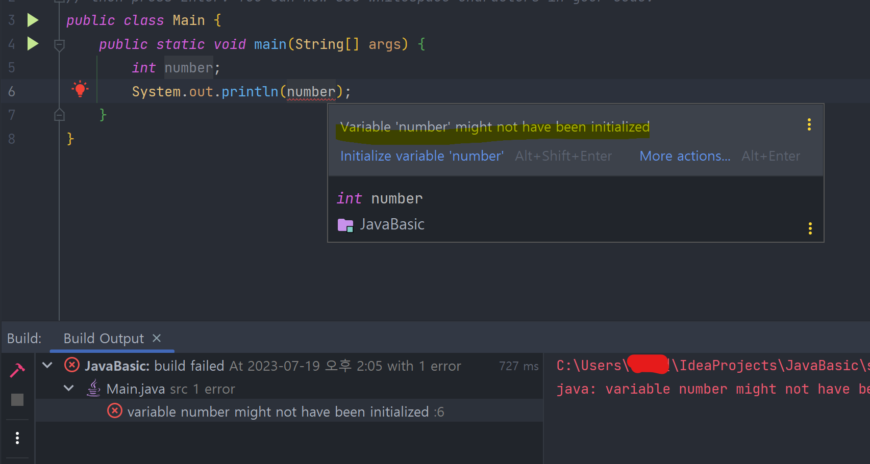 ์ด๊ธฐํ ํ์ง ์์์ผ๋ฏ๋ก ํ ๋น๋ ๊ฐ์ด ์์ด์ ๊ฐ์ ์ถ๋ ฅํ์ง ๋ชปํ๋ค.