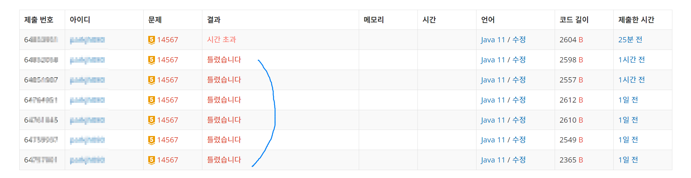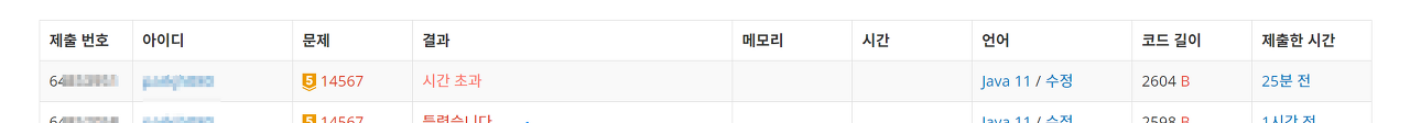 ํ์ง๋ง ๋ชจ๋ ๊ฒฝ์ฐ์ ์์์ ๋ฐฉ๋ฌธํ๋ ๊ณณ์ ๋ ๋ค์ ๋ค ๋ค๋ฆฌ๋ ๋ฐฉ์์ผ๋ก ์ ๋ต์ ๋ฐฑ์ค์ ์ ์ถ ํ์ ๋ ์๊ฐ ์ด๊ณผ๊ฐ ๋ด๋ค.