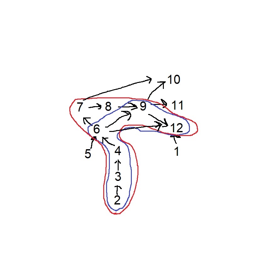 ๋นจ๊ฐ ์ ๋ผ์ธ์ผ๋ก ๊ฐ์ผ์ง ์ ๋ต์ด ๋์ถ ๋๋๋ฐ, ํ์์ ํ๋์ ๋ผ์ธ์ ๋ฐ๋ผ 6๋ฒ์ ๋ค๋ฆฌ๊ณ 9๋ฒ์ ๊ฐ๊ณ 10, 11, 12์ ๋ค๋ฆฌ๊ฒ ๋๋ค. ์ด ๋ ๊ฐ์ด 6์ผ๋ก ์ ์ฅ์ด ๋๊ณ , ํ์์ 7์ ๋ฐ๋ผ 8๋ฒ๋ ๊ฐ๊ณ 9๋ฒ๋ ๊ฐ๊ณ ์ด์ 12๋ฒ์ ๊ฐ ์ฐจ๋ก์ง๋ง