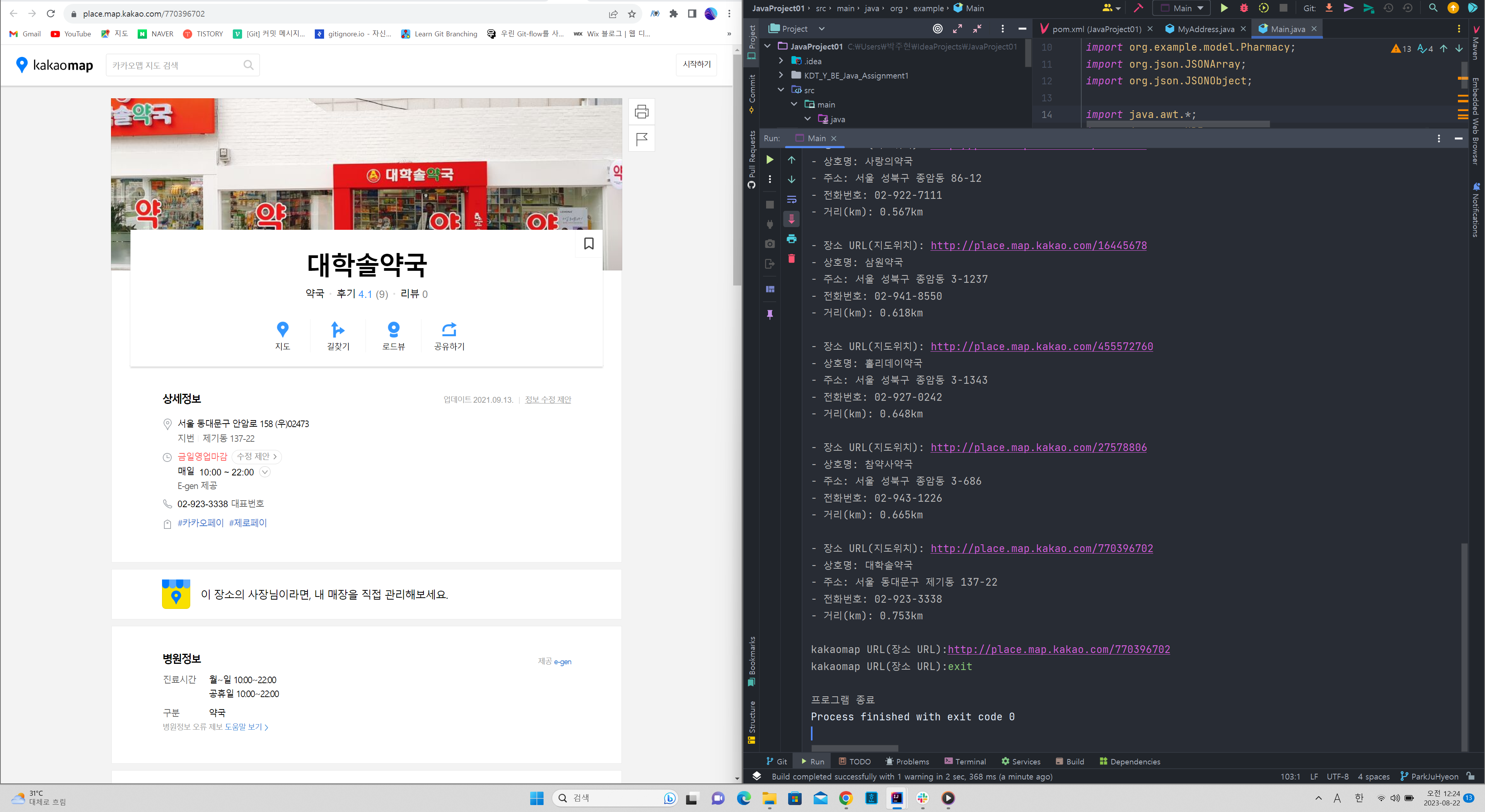 - ๊ฒ์๋ ๊ฒฐ๊ณผ์์ ์ฅ์ URL์ ์ ๋ ฅํ๋ฉด ๋ธ๋ผ์ฐ์ ์ ํด๋น kakaomap์ด ์ถ๋ ฅ๋๋๋ก ํ๋ค.