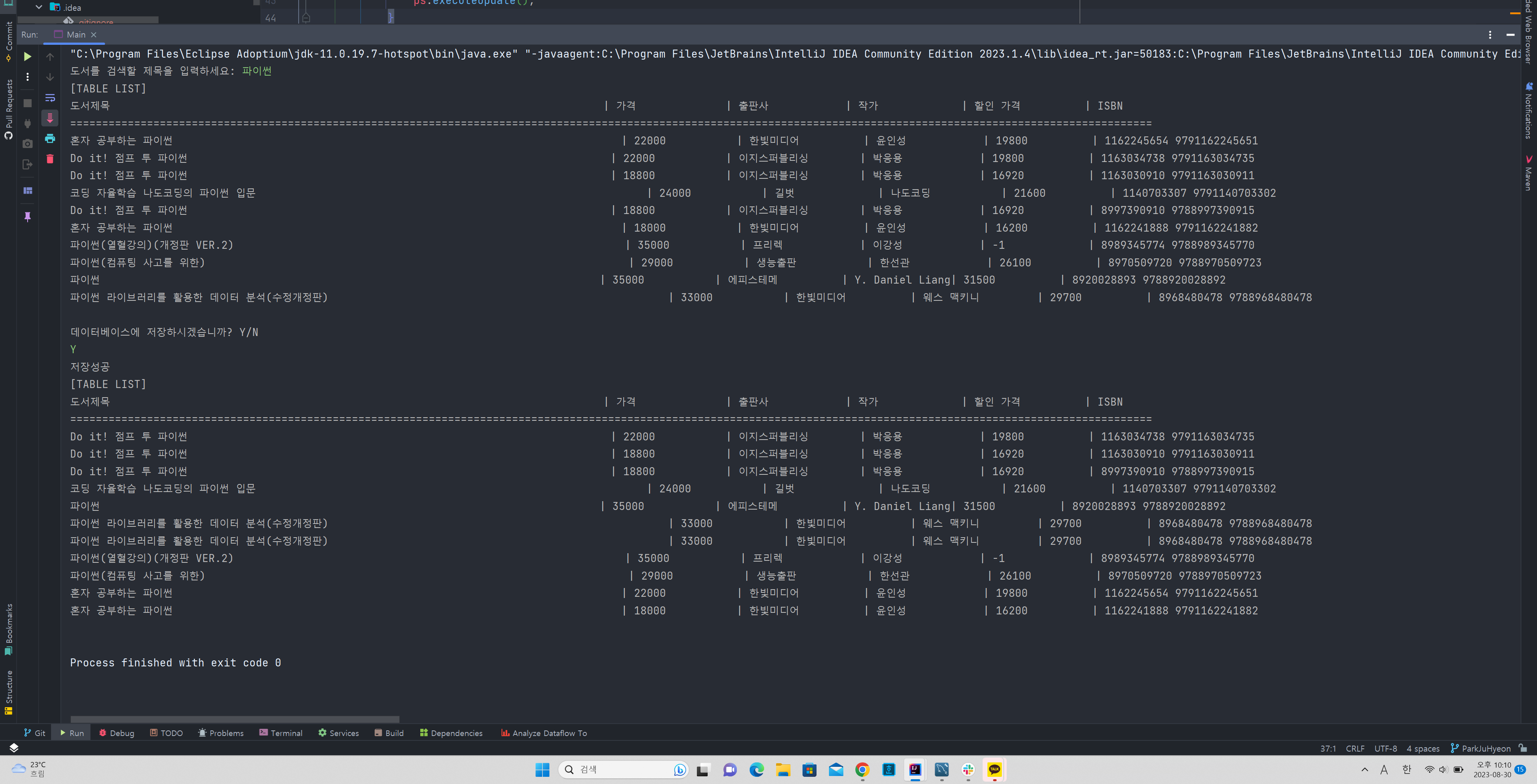 ๊ณผ์ 2 : ์ฑ ๊ฒ์ ๋ฐ ๋ฐ์ดํฐ๋ฒ ์ด์ค Java ์ ํ๋ฆฌ์ผ์ด์ ๊ฐ๋ฐ