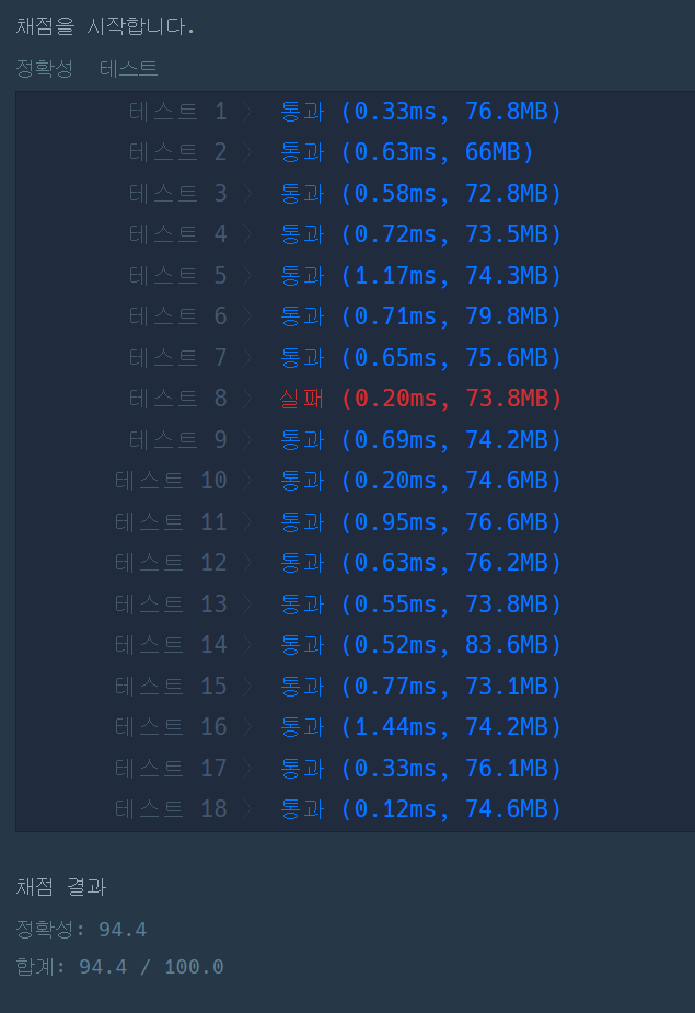 ์ด๋ ๊ธฐ ๋๋ฌธ์ ํ ์คํธ 8 ๋ฒ์ด ํ๋ฆฐ ๊ฒ์ด๋ค.