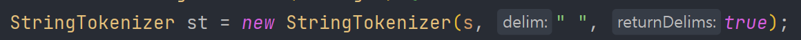 StringTokenizer st = new StringTokenizer(s, " ", true);