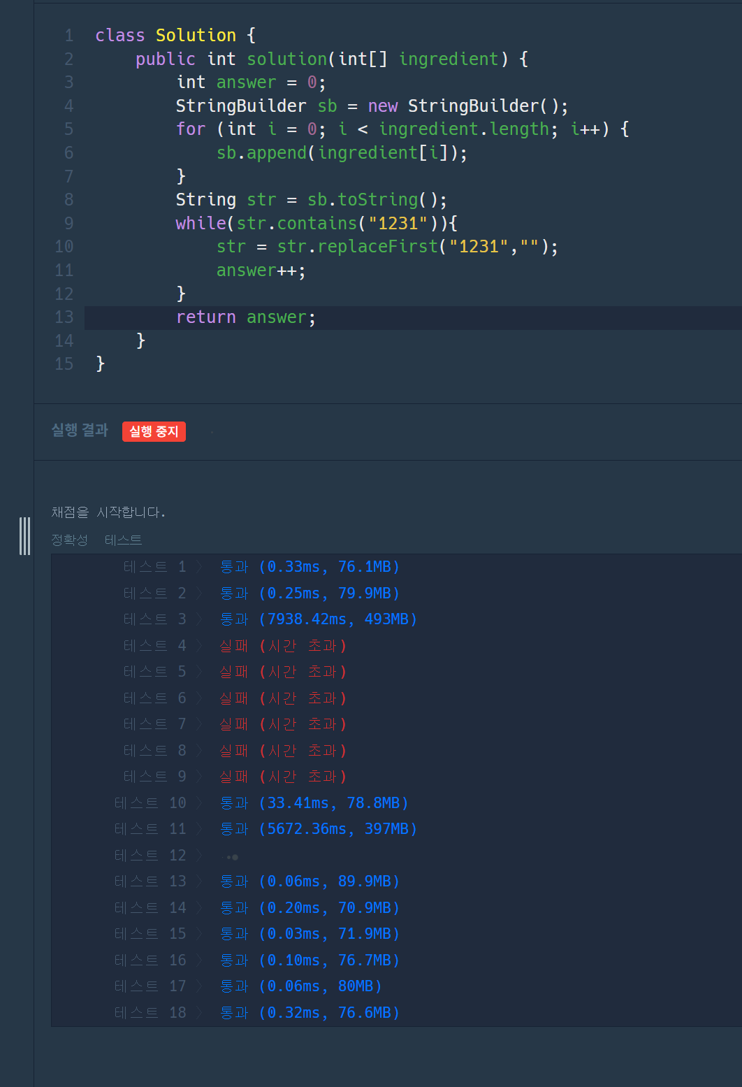 ๋ฐฉ๋ฒ๋ก ์ ์ผ๋ก ๋ง์ง๋ง String ์ผ๋ก ๋ก์ง์ ๋ค๋ฃฌ๋ค๋ฉด ์๊ฐ ์ด๊ณผ๊ฐ ๋ ๊ฒ์ด๋ค.