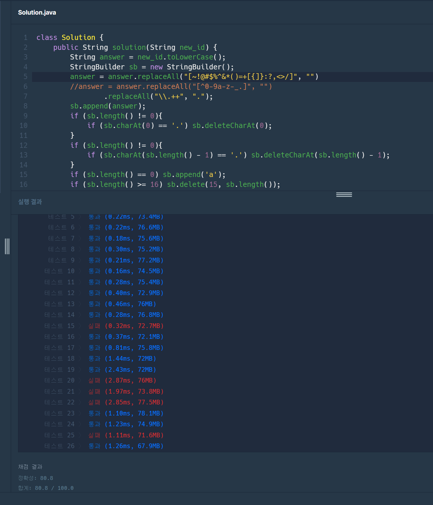 νμ§λ§ ν μ€νΈ μΌμ΄μ€ κ³³κ³³μμ μ€ν¨ νμλ€.