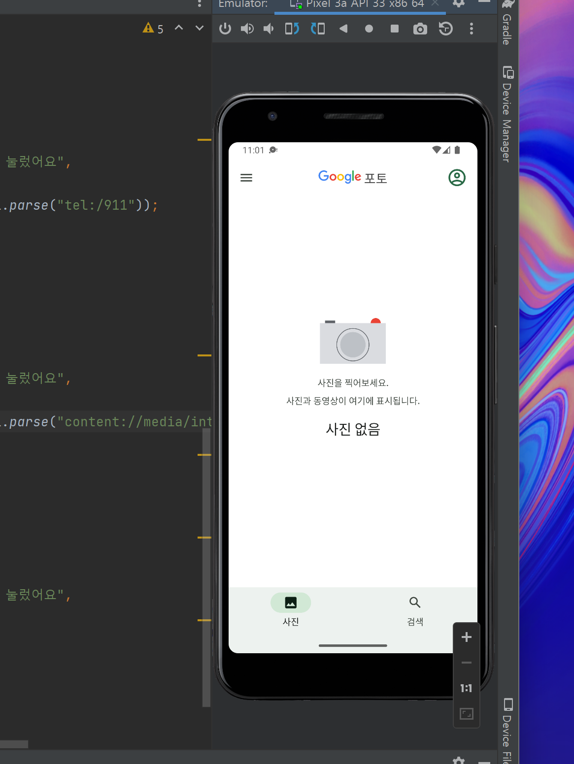 AVD๋ฅผ ํตํด ์ดํ์ ์คํ์ํค๊ณ ๋ฒํผ์ ๋๋ ์ ๋ ์ ๋๋ก ์๋ํ๋ ๊ฒ์ ํ์ธ ํ ์ ์์๋ค.