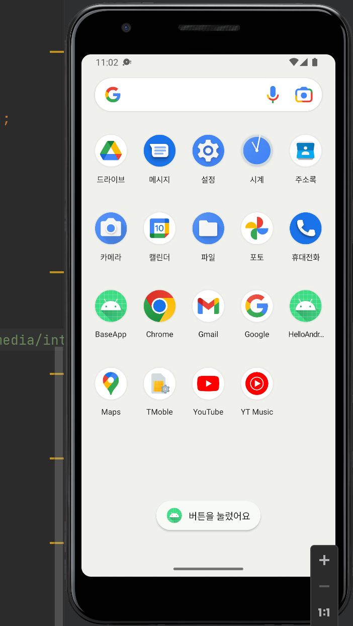 Toast.makeText(getApplicationContext(), "๋ฒํผ์ ๋๋ ์ด์",
