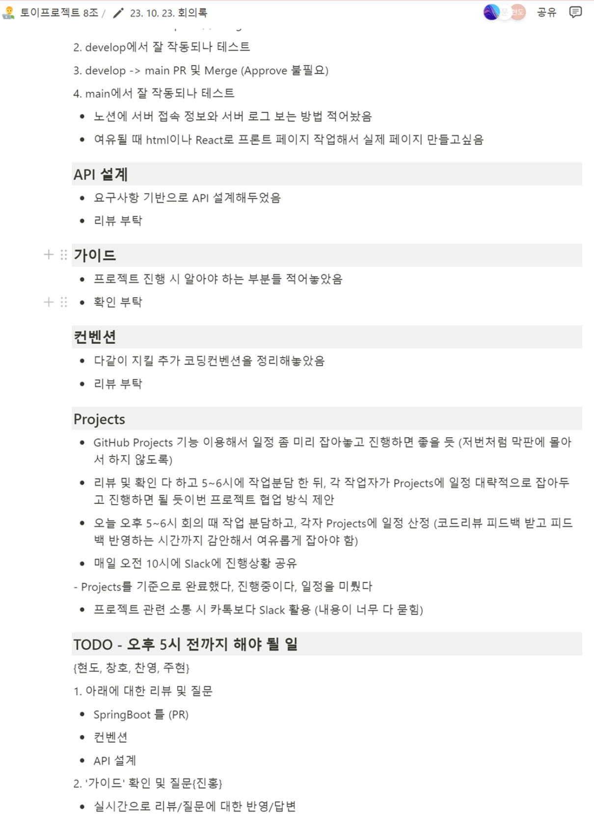 ํ๋ก์ ํธ๊ฐ ๋๋๊ณ ๋ค๊ฐ์ด ๋ชจ์ฌ์ ํ๋ก์ ํธ์ ๋ํ ๋ฆฌ๋ทฐ ๋ฐ ํผ๋๋ฐฑ, ํ๊ณ ํ๋ ์๊ฐ์ ๊ฐ์ก๋ค.