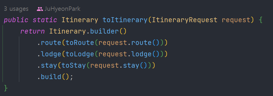 Itinerary itinerary = createItinerary(trip);