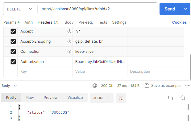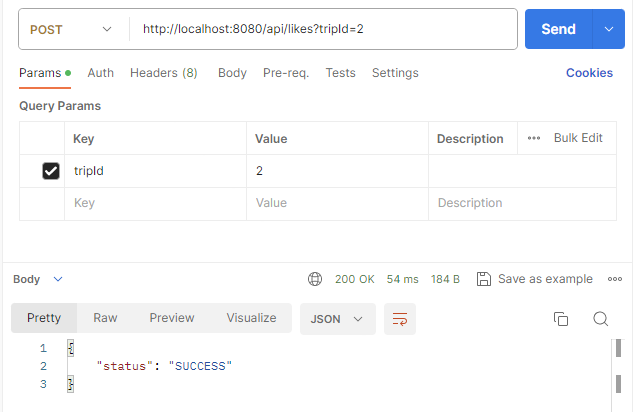 likeService.saveLike(tripId, member.getEmail());