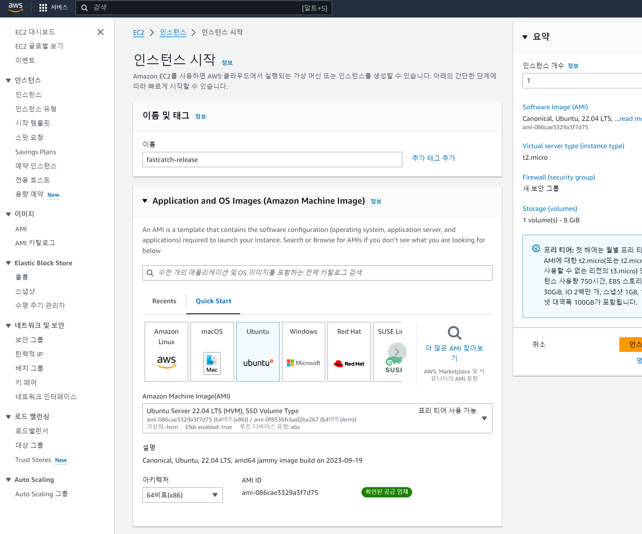 AMI ๋ก ๋ ํผ๋ฐ์ค๊ฐ ๋ง์ด ์๋ Ubuntu ๋ฅผ ํ์ฉํ์๋ค.