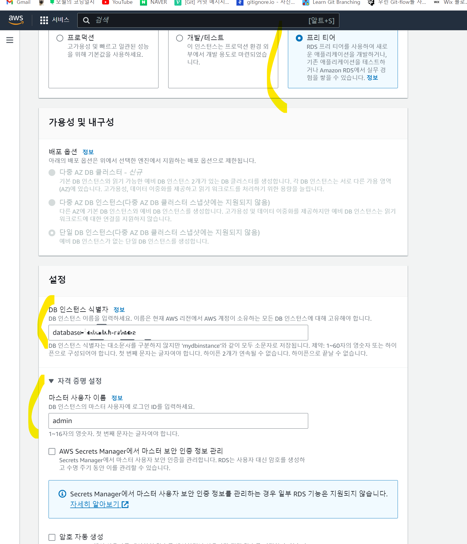 ๋๋จธ์ง๋ ๋ชจ๋ ๊ธฐ๋ณธ๊ฐ์ผ๋ก ํ์ฌ RDS ์ธ์คํด์ค๋ฅผ ํ๋ ์์ฑํ๋ค.