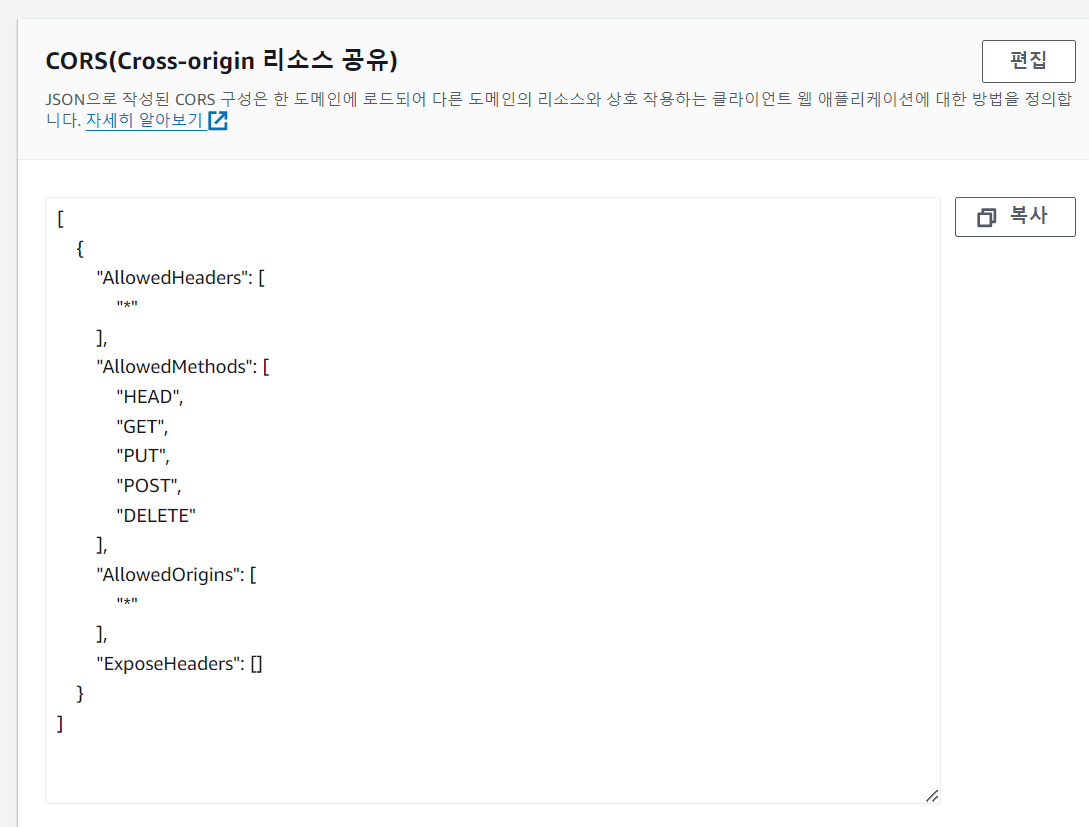 ์ด์ ์๋๋ก ์คํฌ๋กค์ ๋ด๋ ค CORS ์ค์ ์ ํด์ค์ผํ๋ค.