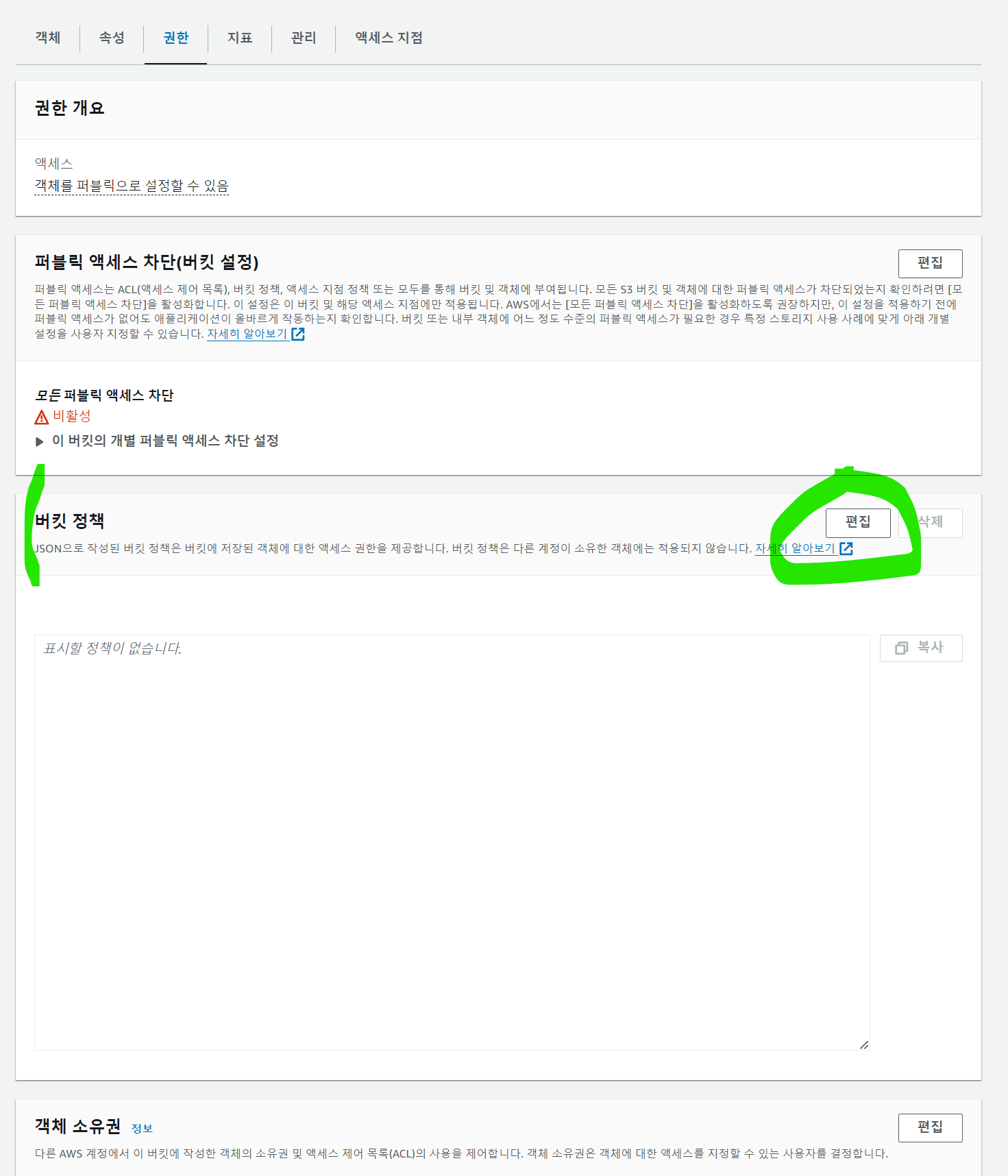 ๊ถํ ํญ์ ๋๋ฌ ์ด์ ๋ง๋ S3์ ๊ถํ์ ์์ ํด์ค๋ค.