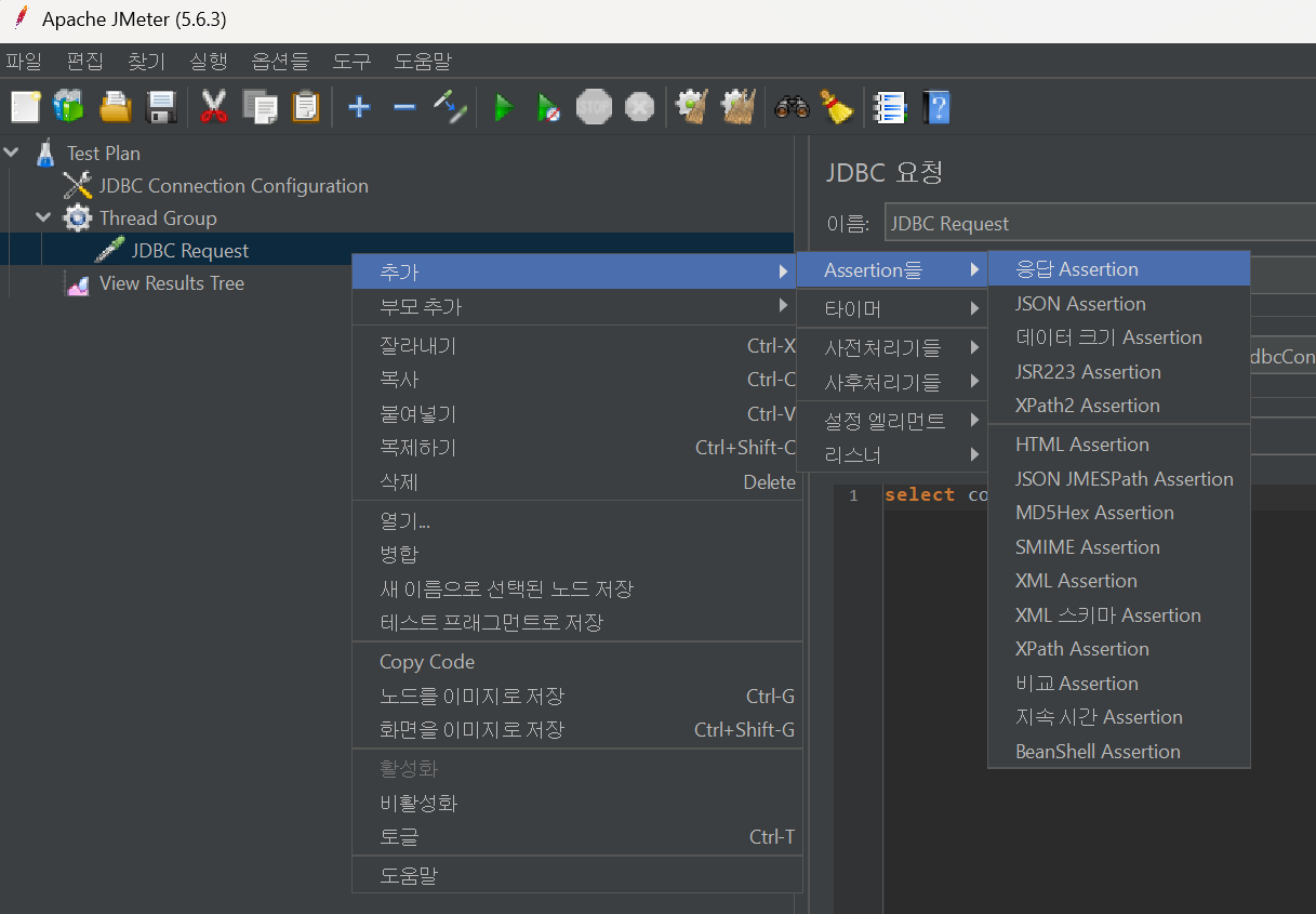 [ νμΌ > μ μ₯ ]μ λλ¬ νμΌμ μ μ₯νκ³ JDBC Requestνλ©΄μ λμ°κ³ μλ¨μ μ΄λ‘μμΌλ‘ λ μμλ²νΌμ λλ¬ μμνλ€.