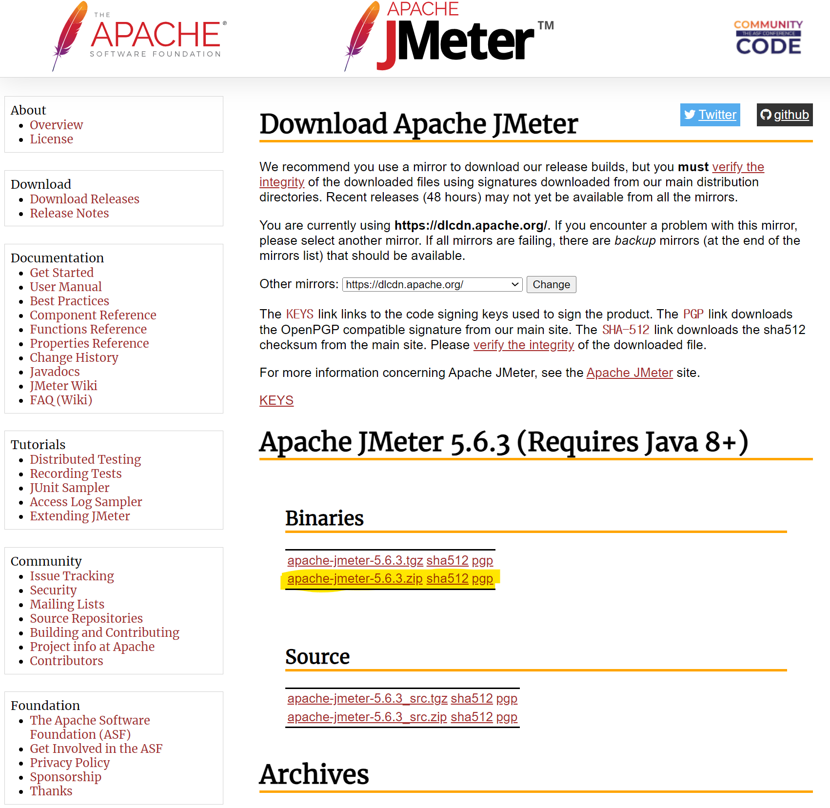 Download Apache JMeter We recommend you use a mirror to download our release builds, but you must verify the integrity of the downloaded files using signatures downloaded from our main distribution directories. Recent releases (48 hours) may not yet be ava