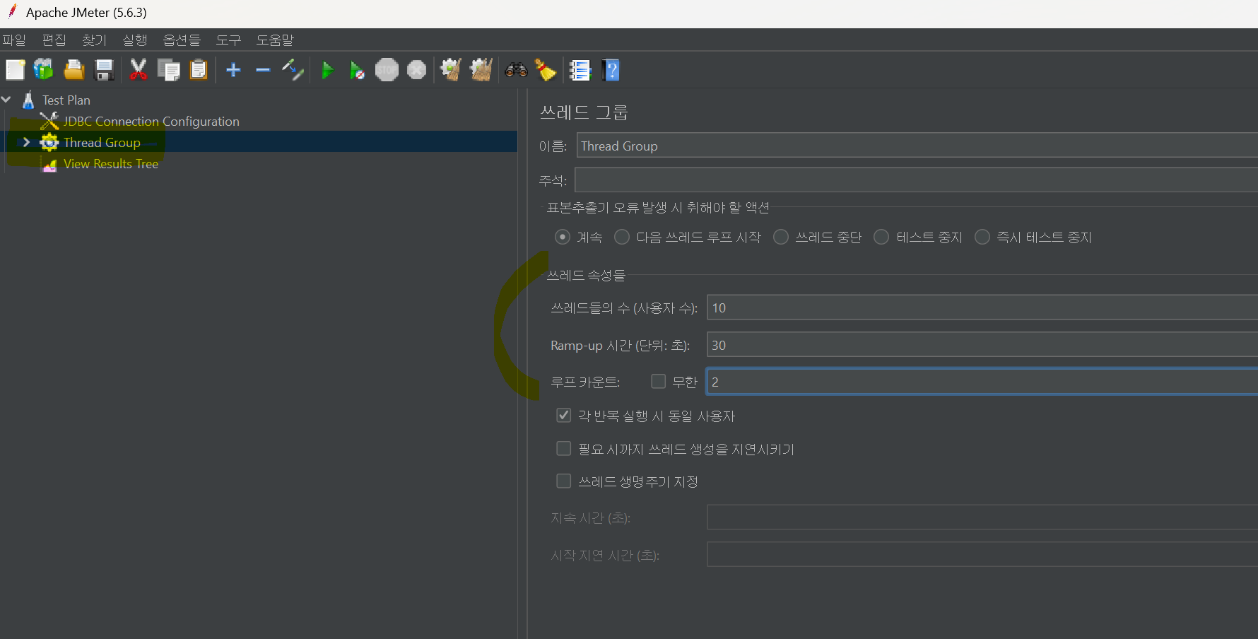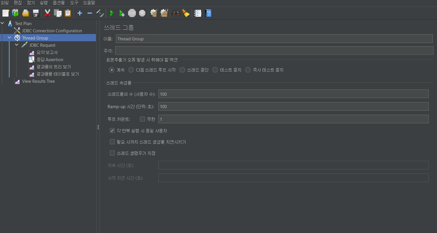 - Thread Group : ν μ€νΈμ μ¬μ©λ μ°λ λ κ·Έλ£Ή, μ°λ λ 1κ°λΉ μ¬μ©μ 1λͺ μΈ κΌ΄μ΄λ€.