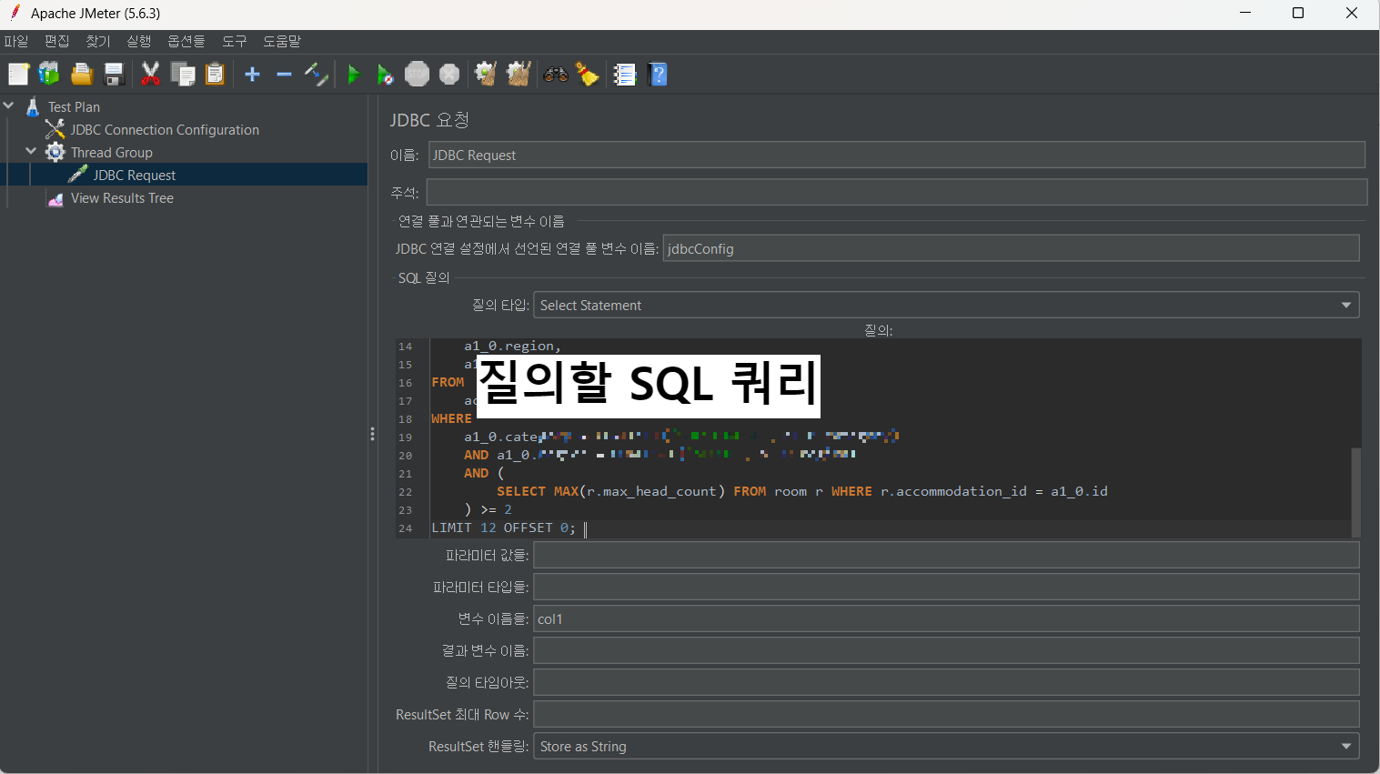 4) Sampler μ€μ (JDBC Request μ€μ )