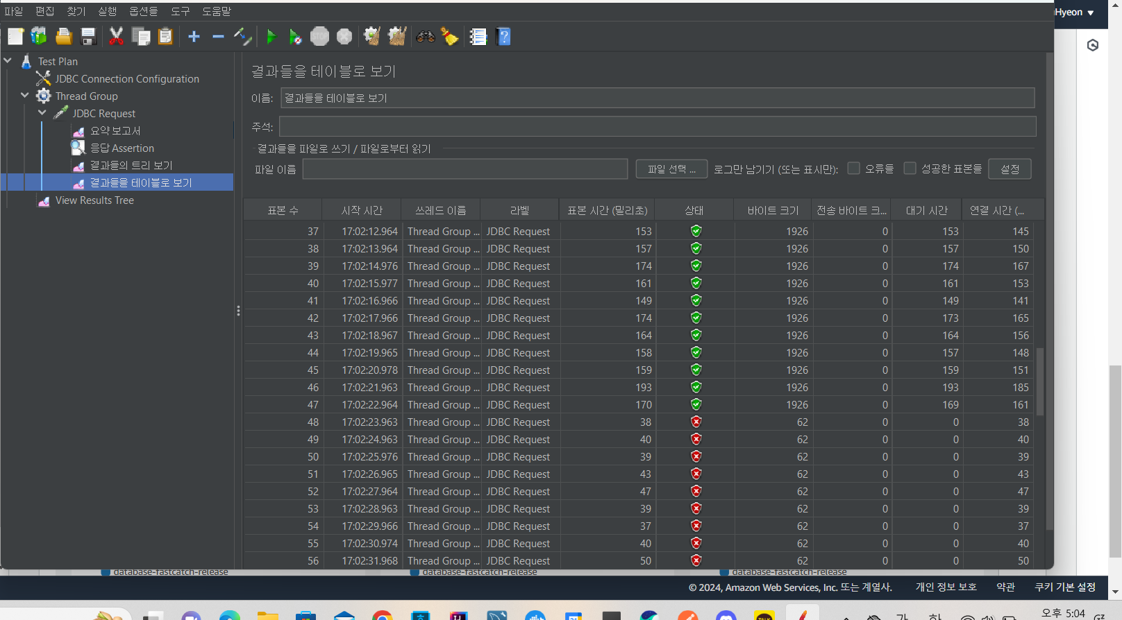 View Results Treeλ₯Ό Table νμμΌλ‘ 보μ¬μ€λ€. λ°μ΄ν°λ λμΌλ€.