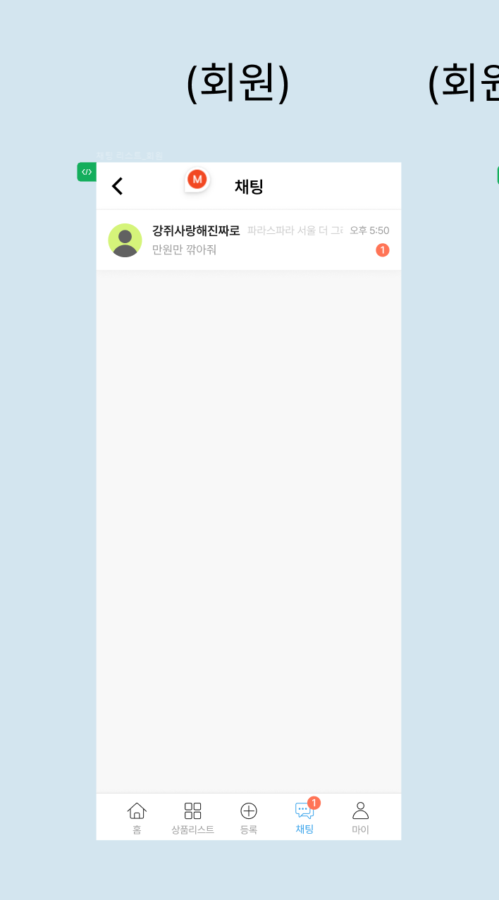 ์ฑํ ๋ฐฉ ๋๊ฐ๊ธฐ๋ฅผ ํ๋ฉด ์ผ๋จ ํ๋งค์์ธ ๊ฒฝ์ฐ ๊ตฌ๋งค์๊ฐ ์ฑํ ๋ฐฉ์ ๋๊ฐ๋์ง ํ์ธํ๊ณ ์ ๋๊ฐ๋ค๋ฉด ํ๋งค์์ ํ๋๊ฐ๋ง true๋ก ์์ ํด์ฃผ์๋ค.