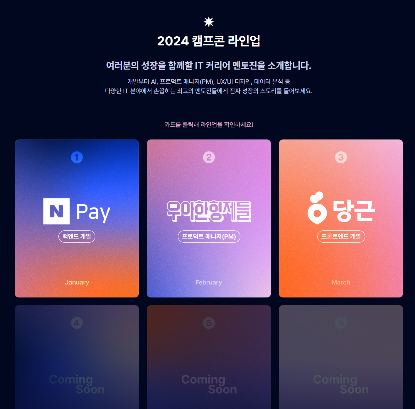 ์ฌ๋ฌ๋ถ๋ 2์, 3์ ์บ ํ์ฝ ์ ์ฒญํด์ ํ๋ฒ ๋ค์ด๋ณด์ธ์!