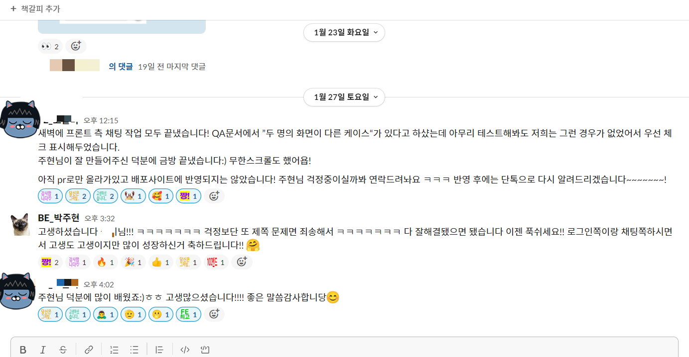 ๊ธฐํ๋จ์ ์์ฑ๋ ํํ์ด์ง QA๋ฅผ ์งํํด์ฃผ์ด ์๋น์ค ๋ฐฐํฌ์ ๊ณ ์ณ์ผํ ๋ถ๋ถ์์ก์์ฃผ์ จ์ต๋๋ค.