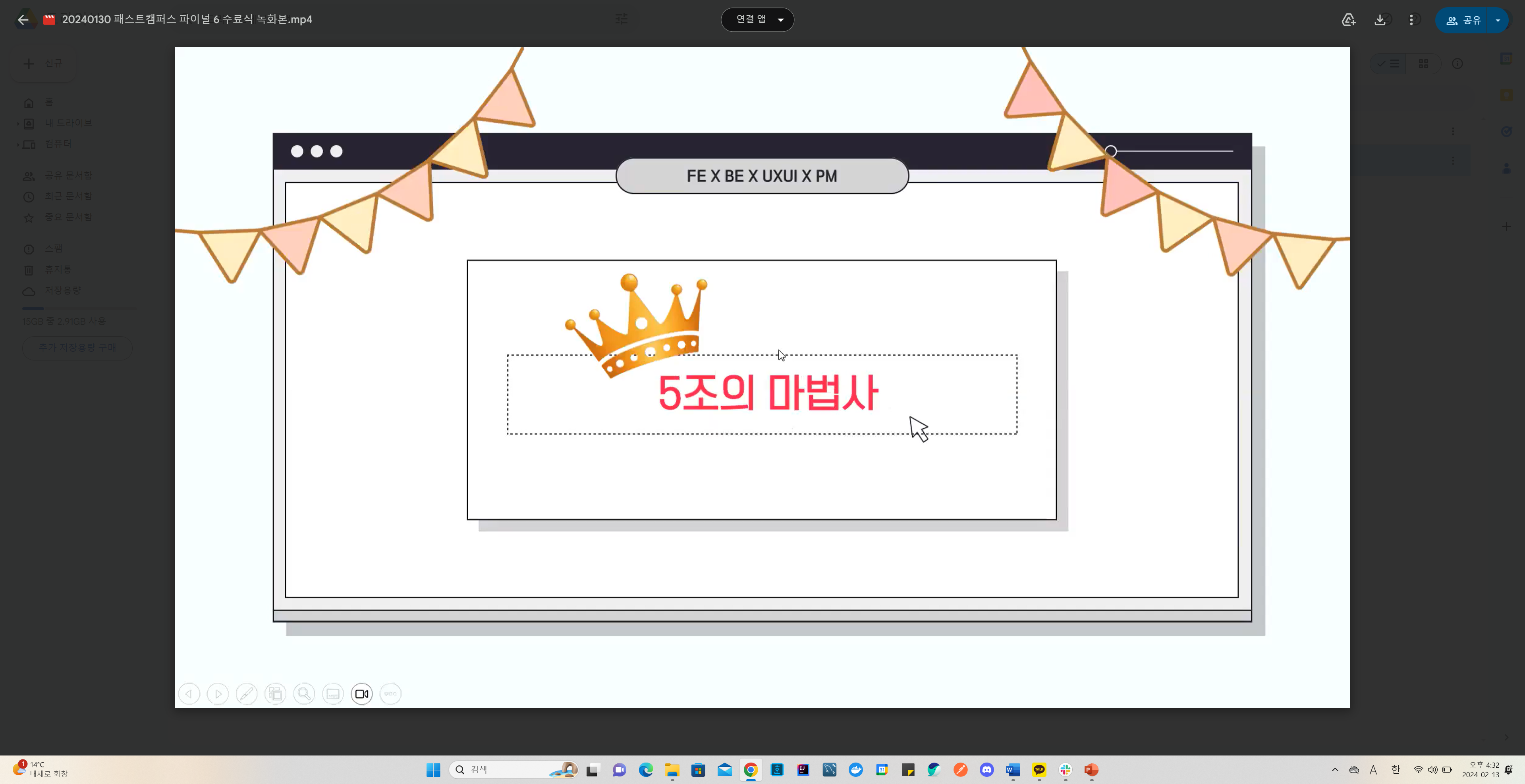 1์ 29์ผ ์ต์ข ๋ฐํ๊น์ง ํ๋ฉด์ ํ์ด๋ ํ๋ก์ ํธ๊ฐ ๋๋ฌ์ต๋๋ค. ํ๋ฌ์ด ๋๋ ์๊ฐ๋์ 15๋ช ์ด ํจ๊ป ๋งค์ฐ ๊ณ ์ํ๋ฉฐ ๋ง๋ ์ํ์ด๋ผ ์ ์ ๋ ๊ฐ๊ณ ๋ณด๋์ฐจ๊ธฐ๋ ํ์ต๋๋ค.