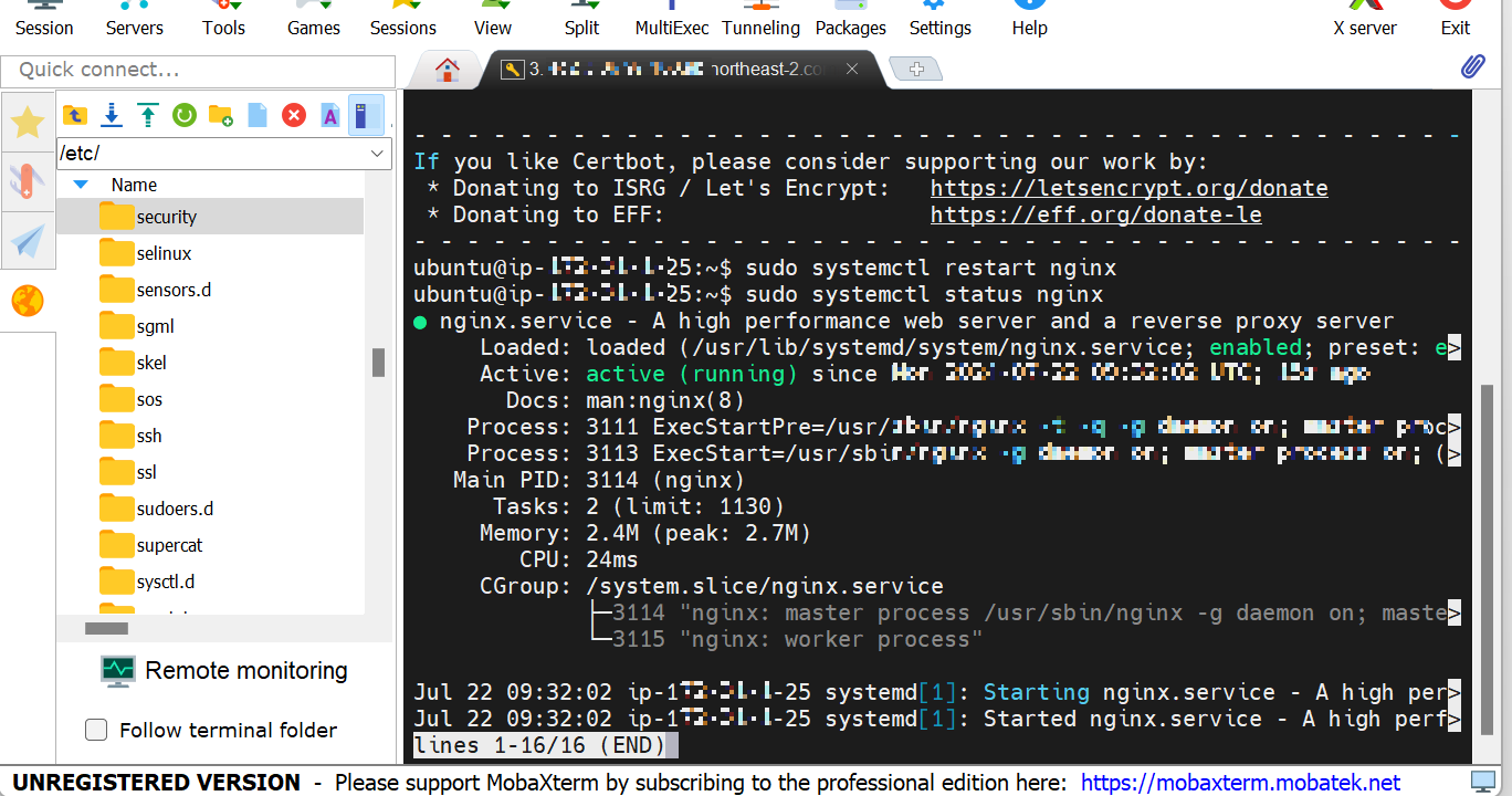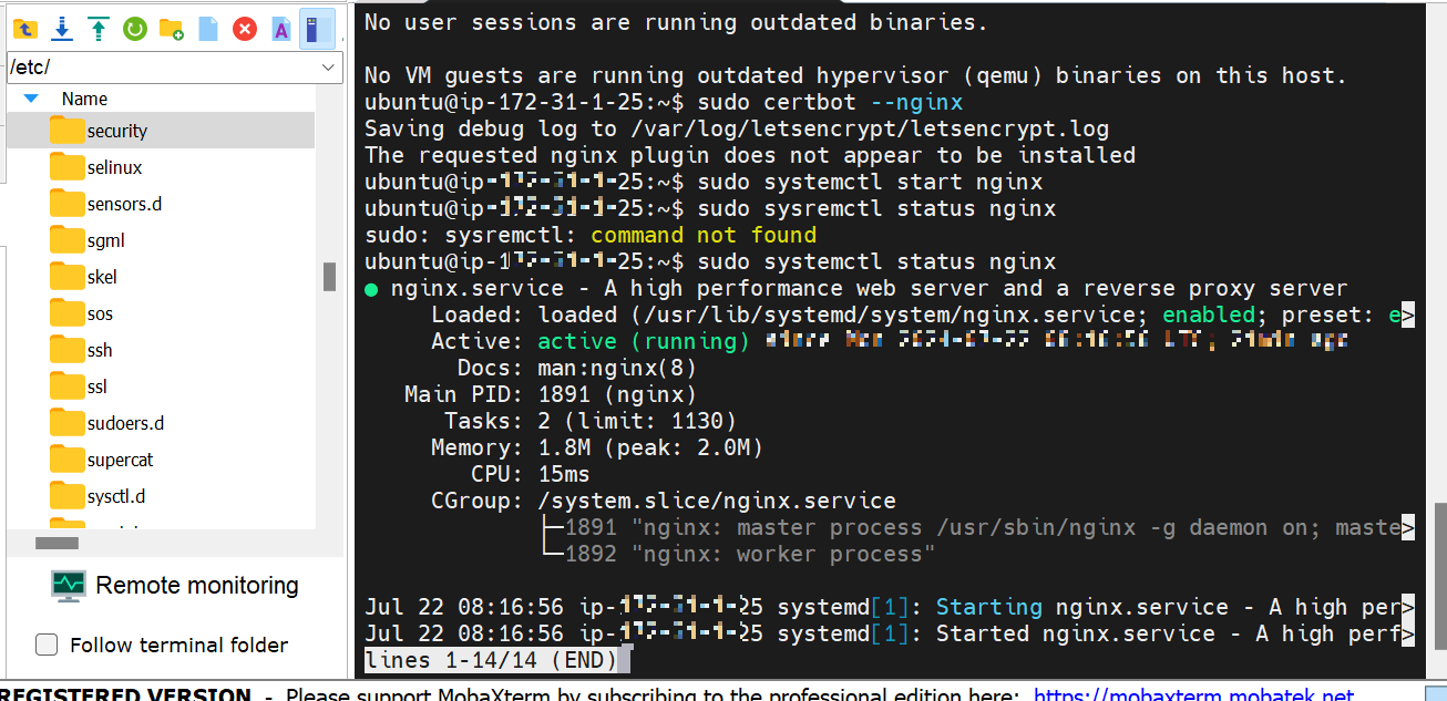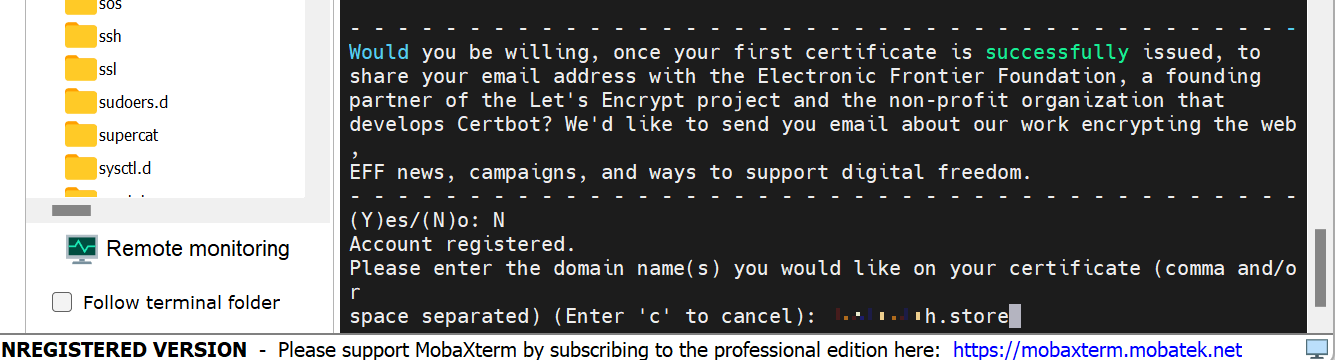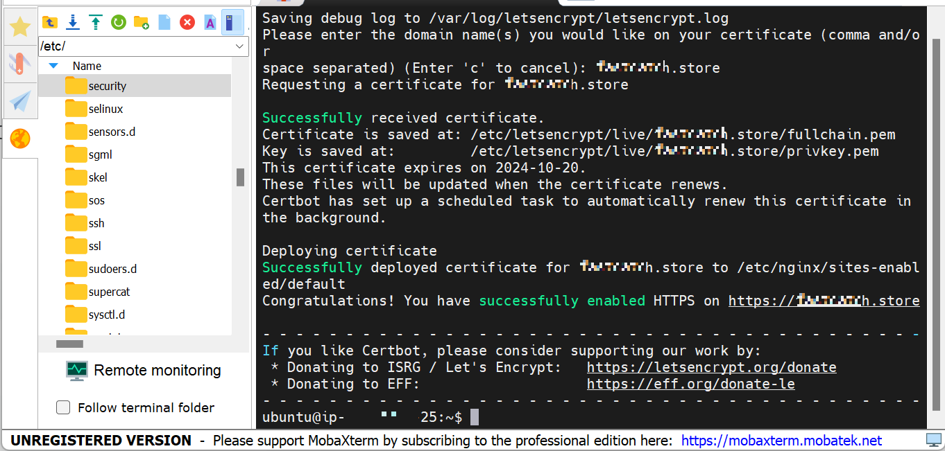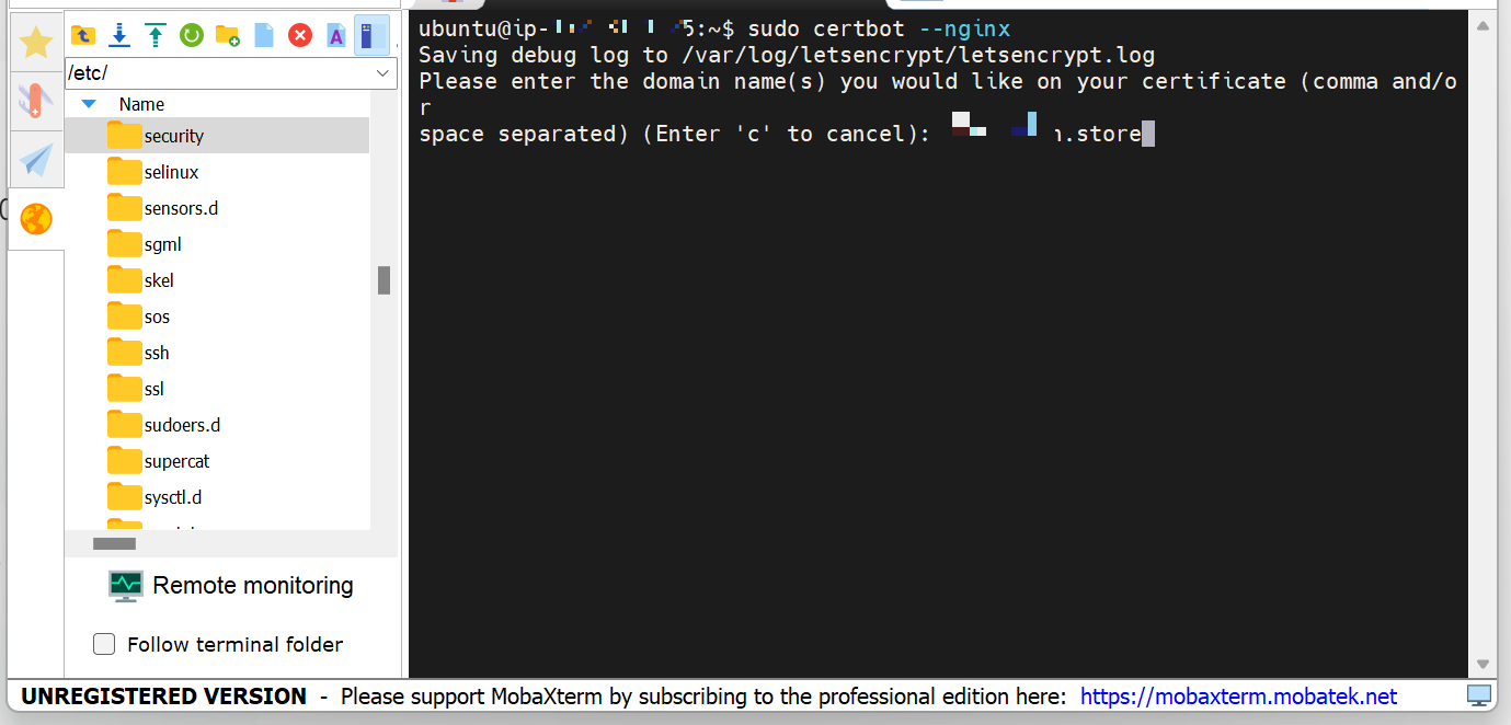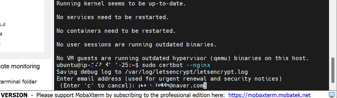 $ sudo certbot --nginx