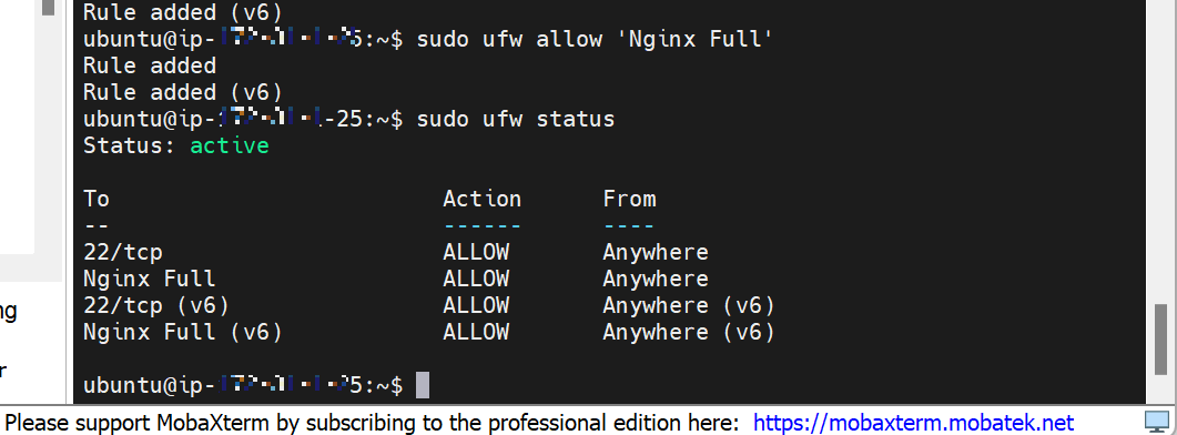 $ sudo ufw allow 'Nginx Full' # 80, 443λ² ν¬νΈ νμ©