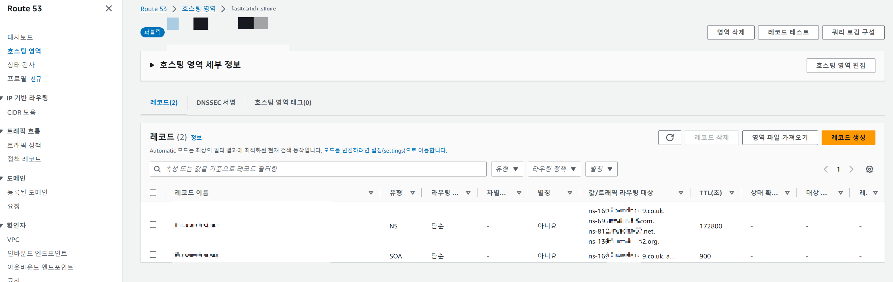 λ¨Όμ ꡬμ ν λλ©μΈμ νΈμ€ν μμ λ±λ‘μ ν΄μ€μΌν©λλ€. AWS Route53 μλΉμ€λ₯Ό μ΄μ©νμ¬ μ§ννμ΅λλ€.