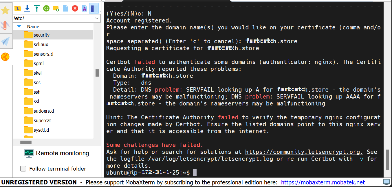 μ΄ μ€λ₯ λ©μμ§λ Let's Encrypt μΈμ¦μ λ°κΈ κ³Όμ μμ μ λλ©μΈ *******.storeμ DNS νμΈμ΄ μ€ν¨νμμ λνλ λλ€.