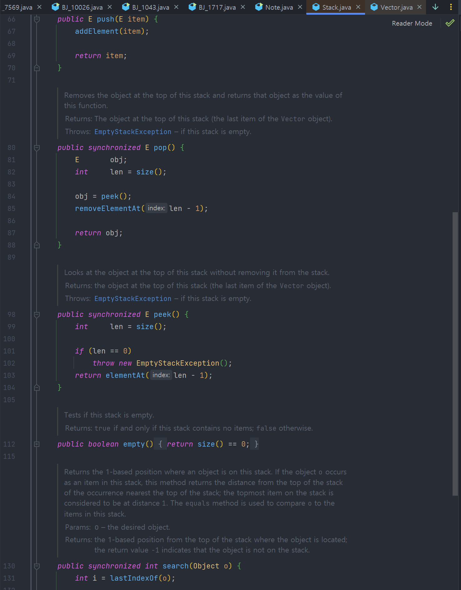 μλ° Collection μΈν°νμ΄μ€λ₯Ό κΉκ² 곡λΆνκΈ° μ μ μ½λ© ν μ€νΈ λ¬Έμ μμ Stack μλ£κ΅¬μ‘°λ₯Ό μ¬μ©ν΄μ λ¬Έμ λ₯Ό νμ΄μΌν λ, μλ°μμ μ 곡ν΄μ£Όλ Stack ν΄λμ€λ₯Ό νμ©ν΄μ λ¬Έμ λ₯Ό νμλ€.