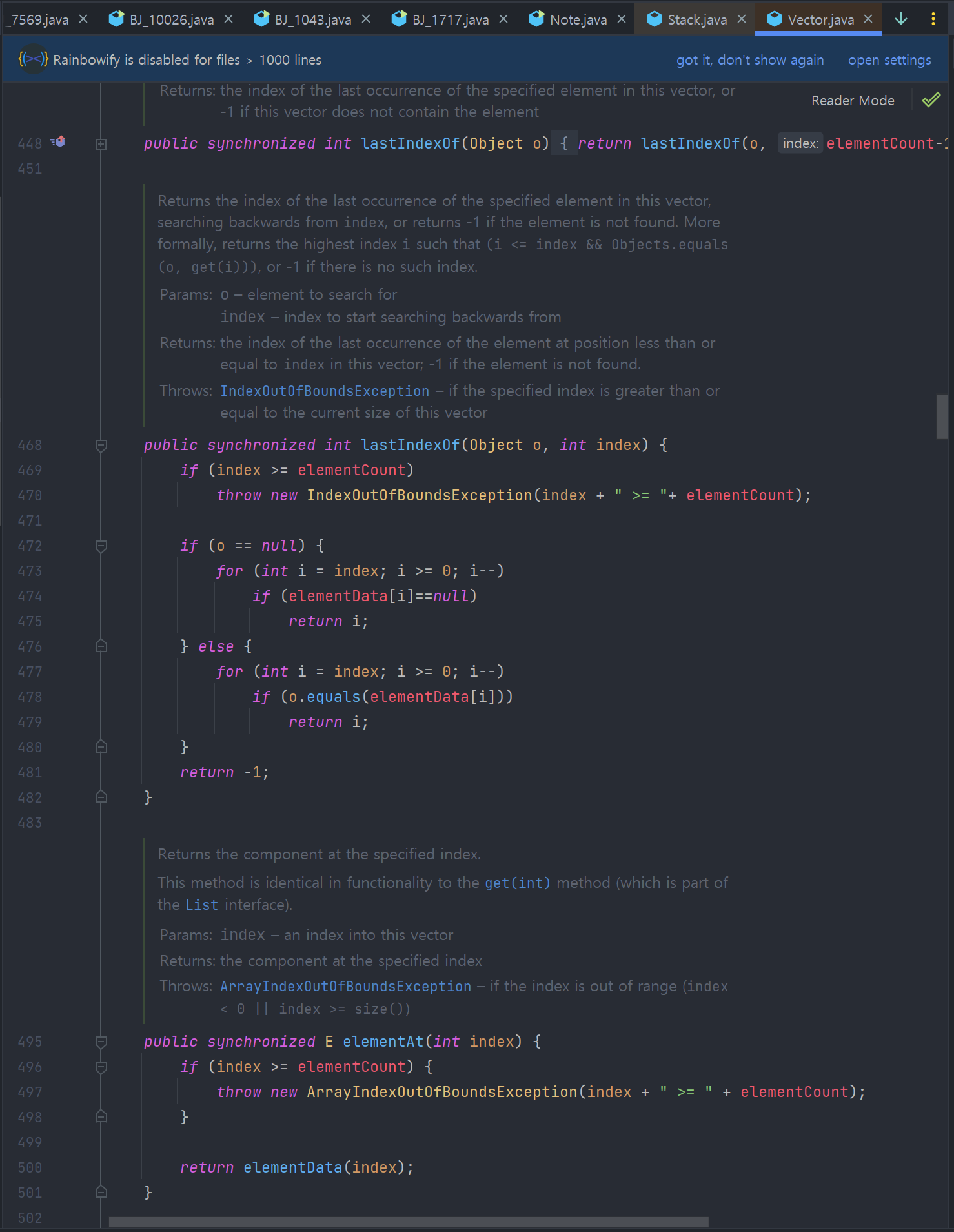 Vectorμ Stackμ λͺ¨λ λκΈ°νλ(synchronized) ν΄λμ€μ΄λ€. μ΄λ λ©ν°μ€λ λ νκ²½μμ μμ νκ² μ¬μ©ν μ μλ€λ μ₯μ μ΄ μμΌλ, λΆνμν λκΈ°νλ‘ μΈν΄ μ±λ₯ μ νκ° λ°μν μ μλ€. λλΆλΆμ κ²½μ°, λκΈ°νκ° νμνμ§ μκΈ° λλ¬Έμ μ΄λ¬ν ν΄λμ€λ€μ μ¬μ©νλ κ²μ λΉν¨μ¨μ μ΄λ€. λμ , λΉλκΈ°νλ ArrayListμ Deque(ꡬν체λ‘λ ArrayDequeλ₯Ό λ§μ΄ μ¬μ©ν¨)λ₯Ό μ¬μ©νλ κ²μ΄ λ λ«λ€.