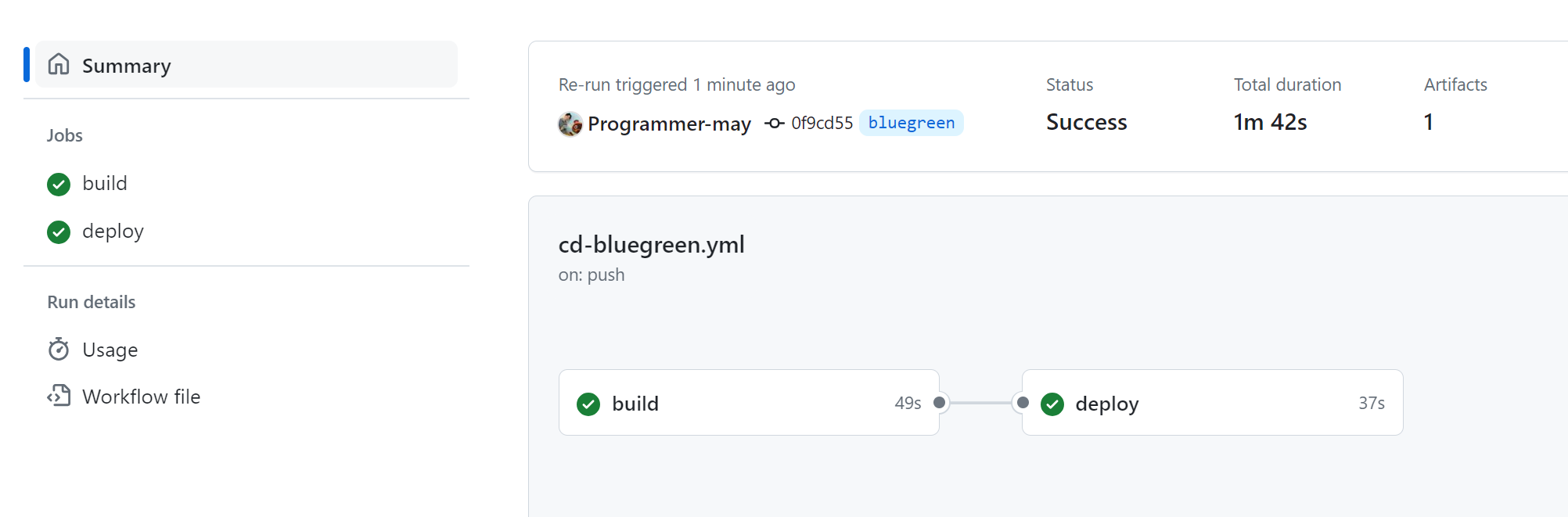 ๋ธ๋ฃจ๊ทธ๋ฆฐ ์ ๋ต ๋์ ํ์ฌ ๋ฌด์ค๋จ ๋ฐฐํฌ๋ฅผ ์คํํฉ๋๋ค. cd-bluegreen.yml ํ์ผ์ ํตํด deploy.sh ํ์ผ์ ์คํํฉ๋๋ค.