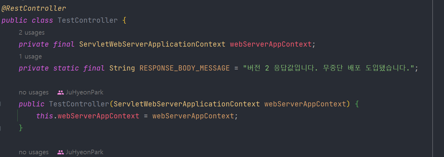 8081 ์์ ์คํ๋๋ ๋ธ๋ฃจ ์๋ฒ๊ฐ 8082 ์์ ๊ทธ๋ฆฐ ์๋ฒ๋ก ๋์ฒด๋๊ณ ๊ตฌ๋ฒ์ ์์ ์ ๋ฒ์ ์ผ๋ก ๋ค์ดํ์ ์์ด ์ ๋ฐฐํฌ๋๋ ๊ฑธ ์ค์ตํด ๋ณผ ์ ์์์ต๋๋ค.