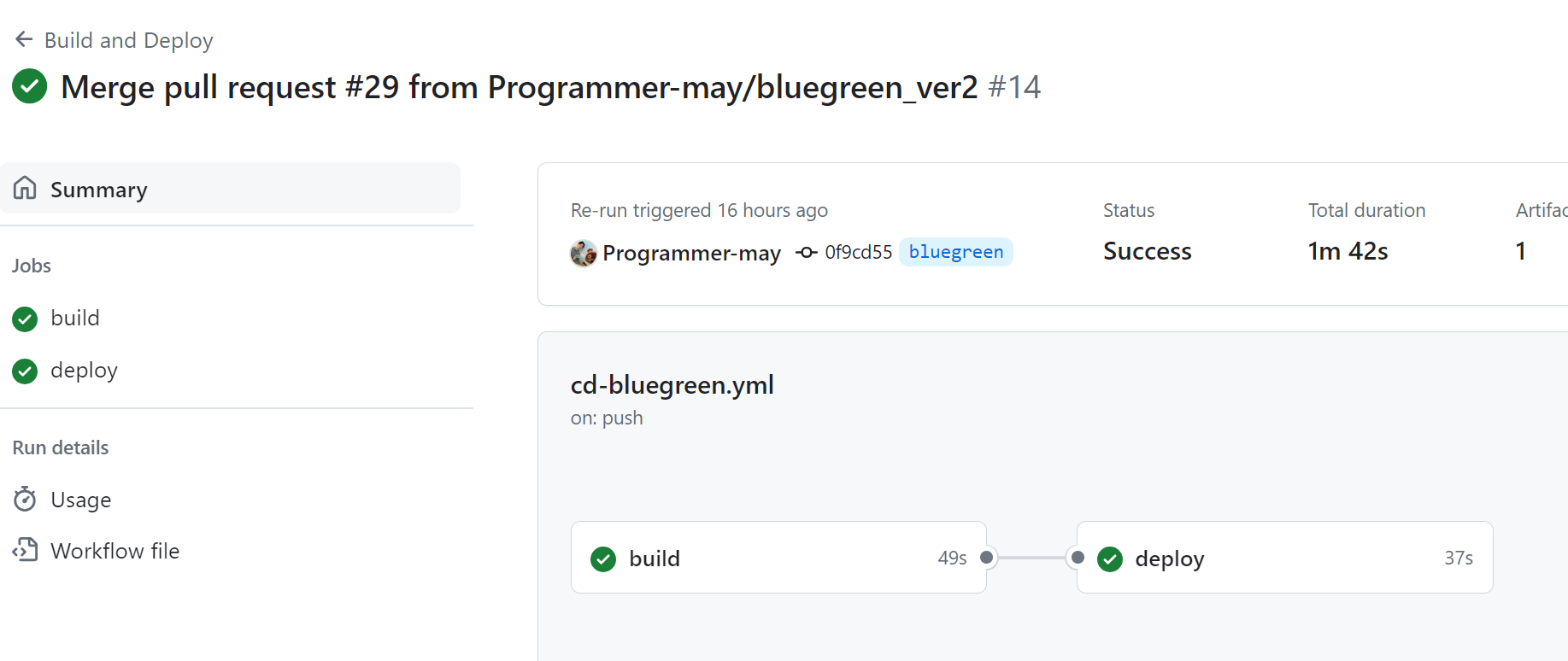 ๊ทธ๋ฆฌ๊ณ cd-bluegreen.yml ํ์ผ์ ํ์ธํด์ค๋๋ค.