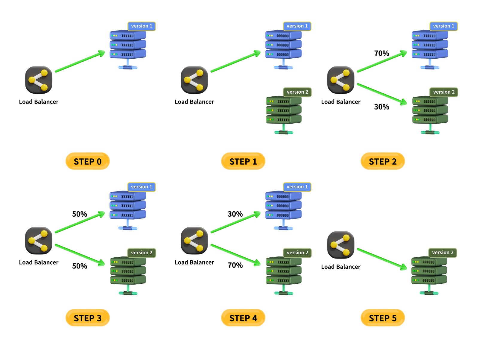 ์นด๋๋ฆฌ ์ ๋ต(Canary Deployment)์ ์๋ก์ด ๋ฒ์ ์ ์์์ ์ฌ์ฉ์์๊ฒ ๋จผ์ ๋ฐฐํฌํ์ฌ ๋ฌธ์ ๋ฅผ ์๋ณํ๋ ๋ฐฉ๋ฒ์ ๋๋ค. ์ด๊ธฐ์๋ ์ผ๋ถ ์ธ์คํด์ค์๋ง ์ ๋ฒ์ ์ ๋ฐฐํฌํ๊ณ , ์ ์ง์ ์ผ๋ก ํธ๋ํฝ์ ๋๋ ค๊ฐ๋ฉฐ ์ ์ฒด ๋ฐฐํฌ๋ฅผ ์๋ฃํฉ๋๋ค.