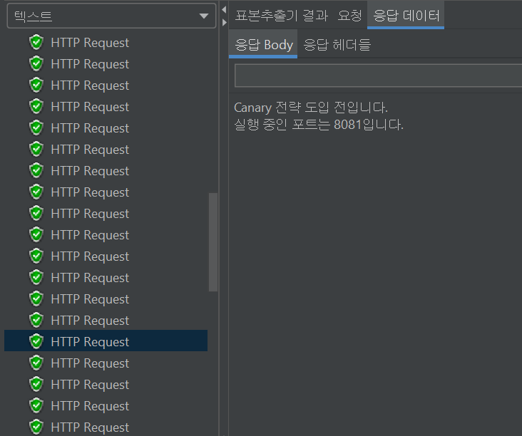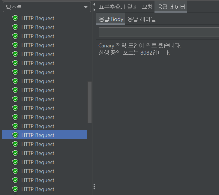 ์นด๋๋ฆฌ ๋ฌด์ค๋จ ๋ฐฐํฌ ์ ๋ต ๋์ ์ ํ๊ฒฝ์ ๊ตฌ์ถํฉ๋๋ค. cd-canary.yml ํ์ผ์ ํตํด JAR ํ์ผ์ ์ ๋ก๋ํ๊ณ , ์ด์ ํ๋ก์ธ์ค๋ฅผ ์ฃฝ์ด๊ณ JAR ํ์ผ์ 8081ํฌํธ, 8082ํฌํธ์์ ์คํํฉ๋๋ค. ์ด ๊ณผ์ ์์ ๋ค์ด ํ์์ด ๋ฐ์ํ๊ฒ ๋ฉ๋๋ค.
