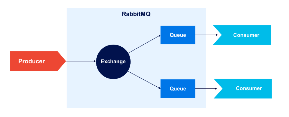 ์ ์ํด ์ค๊ณ ์์ฐ์๊ฐ ๋ฉ์์ง๋ฅผ ๊ตํ์(Exchange)์ ๋ณด๋ด๋ฉด, ๊ตํ์๋ ๋ผ์ฐํ ํค๋ฅผ ์ฌ์ฉํ์ฌ ๋ฉ์์ง๋ฅผ ์ ์ ํ ๋๊ธฐ์ด(Queue)๋ก ์ ๋ฌํ๋ค. ์๋น์๋ ์ด ๋๊ธฐ์ด์์ ๋ฉ์์ง๋ฅผ ๋ฐ์ ์ฒ๋ฆฌ( ๋ณต์กํ ๋ผ์ฐํ ์๋๋ฆฌ์ค๋ฅผ ์ง์ํ๋ฉฐ, ๋ฉ์์ง์ ์ ๋ขฐ์ฑ ์๋ ์ ๋ฌ์ ์ค์ ) |