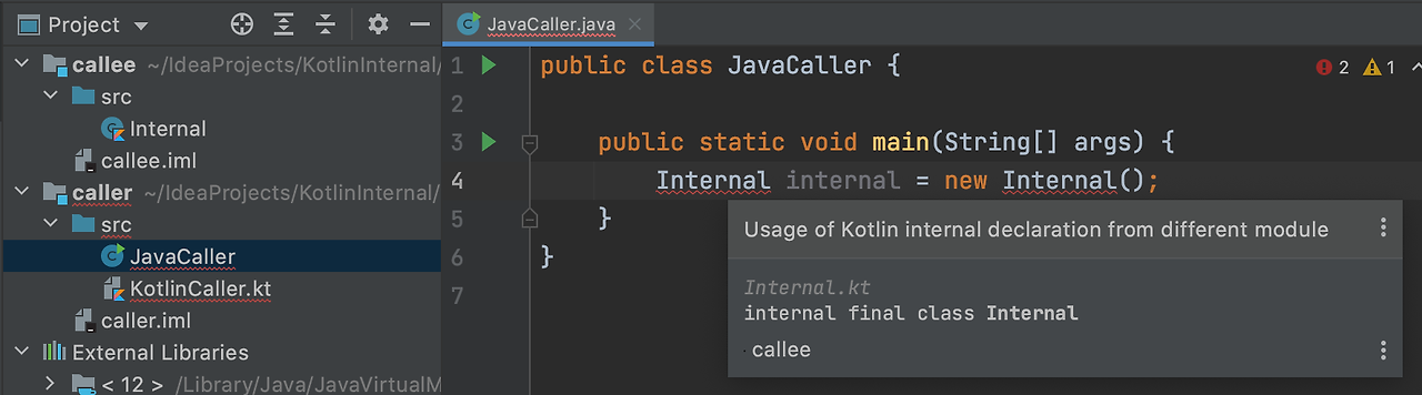 ๋ค๋ฅธ ๋ชจ๋(caller)์์, ์ฝํ๋ฆฐ ํ์ผ์์ ์ ๊ทผํ๋ ค๊ณ ํ๋ฉด ๋ชจ๋์ด ๋ค๋ฅด๋ค๋ ์ปดํ์ผ ์๋ฌ๊ฐ ์๊ธด๋ค.