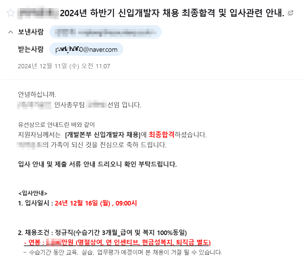 ์๋์ ๊ฐ์ ์ต์ข ํฉ๊ฒฉ ์ด๋ฉ์ผ ๋ฐ๊ณ , ๊ด๋ จ ์๋ฅ์ ๋ํ ์๋ด๊ฐ ์์๋ค. ์ถ๊ทผ ์์น๊ฐ ๋๋ฌด ๋ฉ์ด์ ์ถ๊ทผ๊ธธ์ด ํ๋ค๊ธด ํ๋ฐ, ๊ฐ๋ฐ์ ๋งค์ฐ ์ ๊ฒฝ ์ฐ๋ ํ์ฌ๋ผ ๋ง์กฑ์ค๋ฌ์ ๋ค. ๋งค๋ฒ ์ํ์ ํ ๋ ๋ด์ํ์ง ์์์ง๋ง ๋งค์ฐ ๊ฐ์ด์ด ์ํ ๋ค. ํ 60 ๊ณณ ์ ๋ ๋จ์ด์ง๋ ์กฐ๊ธ ๋ค๋คํด์ง๊ณ , ์ ๊ฒฝ ์จ์ ์ง์ํ ๊ณณ๋ค์ด ๋จ์ด์ง ๋ ๋ง์ด ์กฐ๊ธ ์ํ ๋ค.