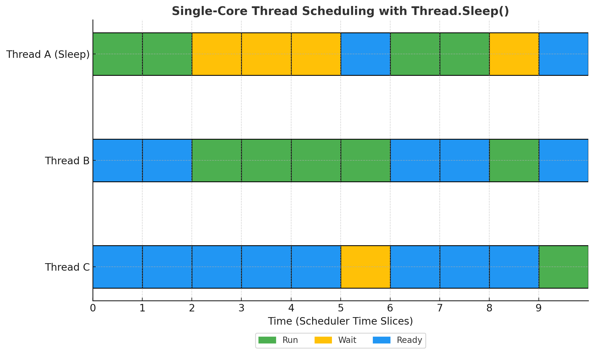 - Sleep์ผ๋ก ๋น์์ง CPU ํ์์ฌ๋ผ์ด์ค๋ ์ค๋น ์ํ(Ready)์ ์๋ ๋ค๋ฅธ ์ค๋ ๋๊ฐ ์ฐจ์งํฉ๋๋ค.