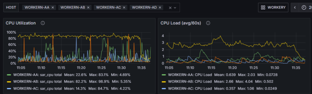 ์์ปค์๋ฒ์ CPU ์์น๋ฅ ์ด ๊ณ์ 99% ์ ์๋ฐํ๋ ์ด์ ๋, ํ์ ํ ์์